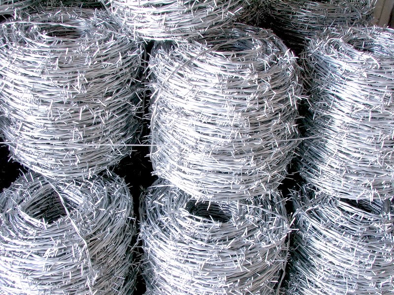 Galvanized steel barbed wire, with high durability, used for fencing and securing perimeters.